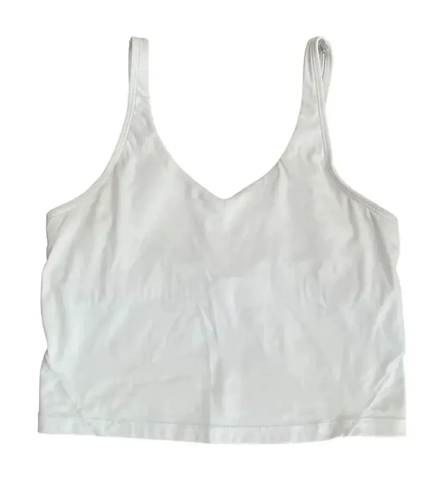 White Cropped Boxy Sporty Yoga Womens VNeck Tank Top Sz S Preowned with signs of discoloration under... Show more