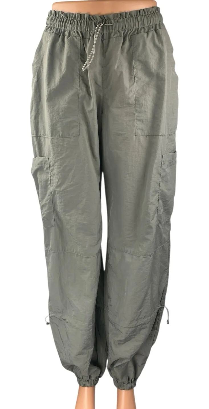 NEW White Fox Women's Gray Tapered Leg High Elastic Drawstring Waist Ankle Baggy Trousers Cargo Wind... Show more