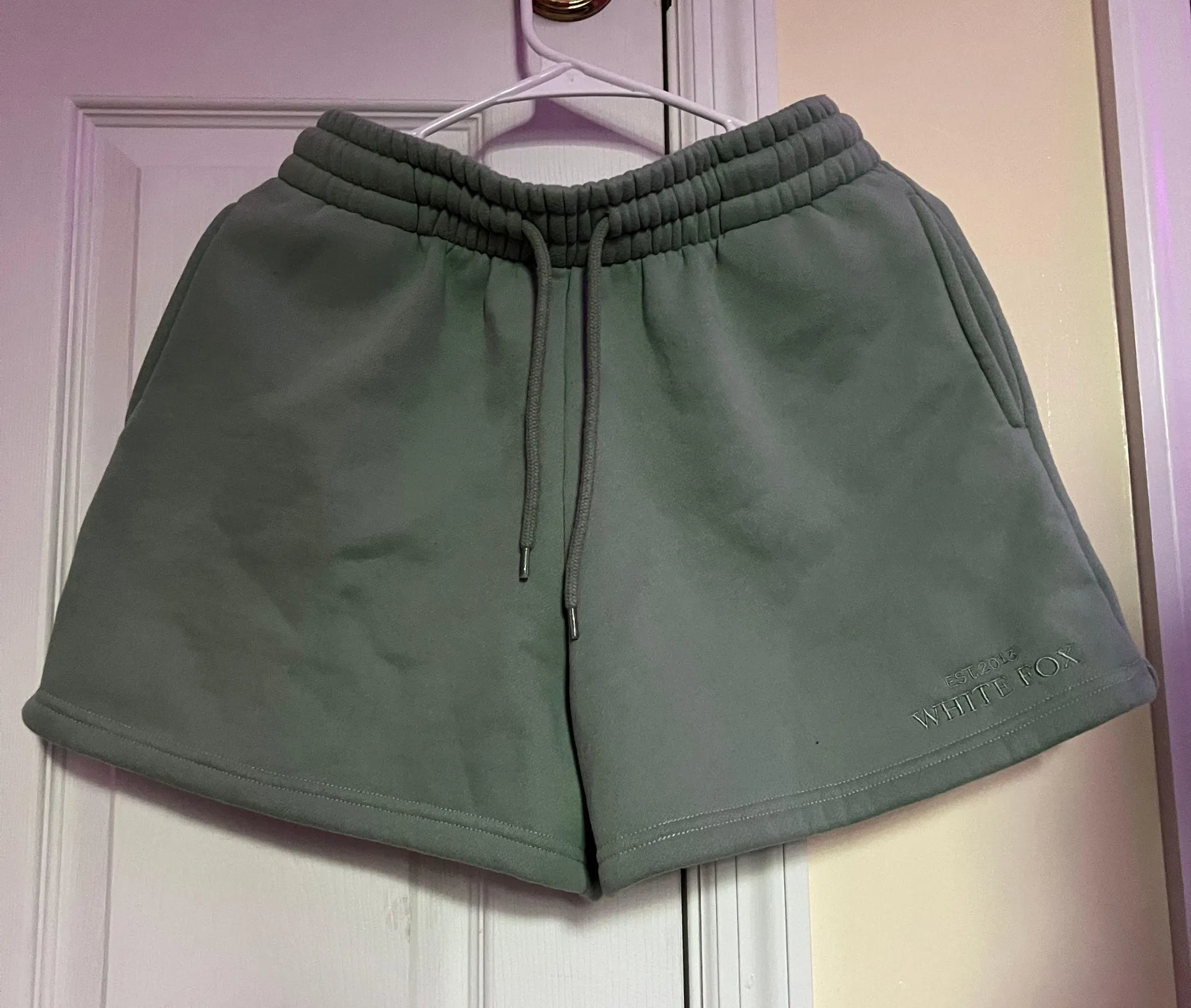 white fox lounge shorts never worn them because i donโt like the length super cozy ๐