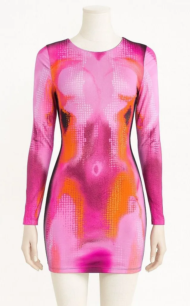 White Fox Bodycon Mini Dress Womens Small Pink Orange Abstract Long Sleeve Womens Size: Small Color... Show more
