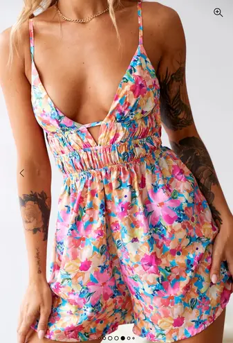 White Fox Women’s‎ Size M Plunge Neck Playsuit Romper Floral Tropical Resort Pink Size M - $50 - From Kayleen