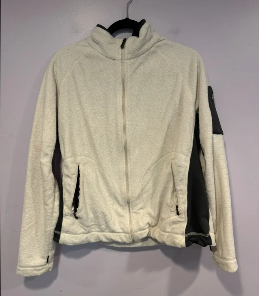 size extra large good condition white fuzzy columbia full zip jacket