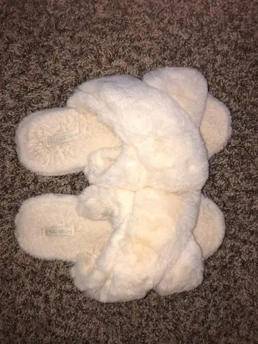 White/cream fuzzy slippers! Only worn a few times, super soft and cozy! Hard bottom. Would fit 8-9! Feel free to make offers! Use code NICOLEC12 for $10 off your first order :)