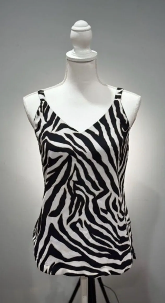BRAND: WHBM SIZE: XXS CONDITION: EUC, tiny pull on left side COLOR: Black/White/Blue MEASUREMENTS: 1... Show more
