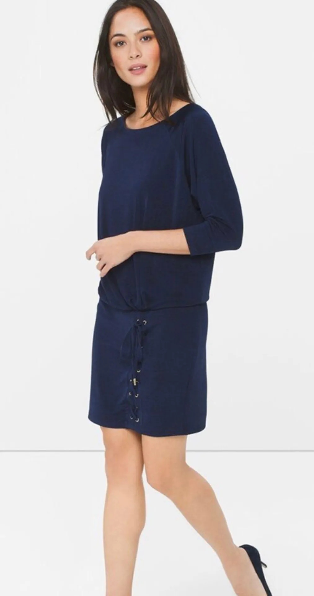 NWT WHBM navy blue dolman sleeve blouson dress size XS polyester/ spandex pullover machine washable