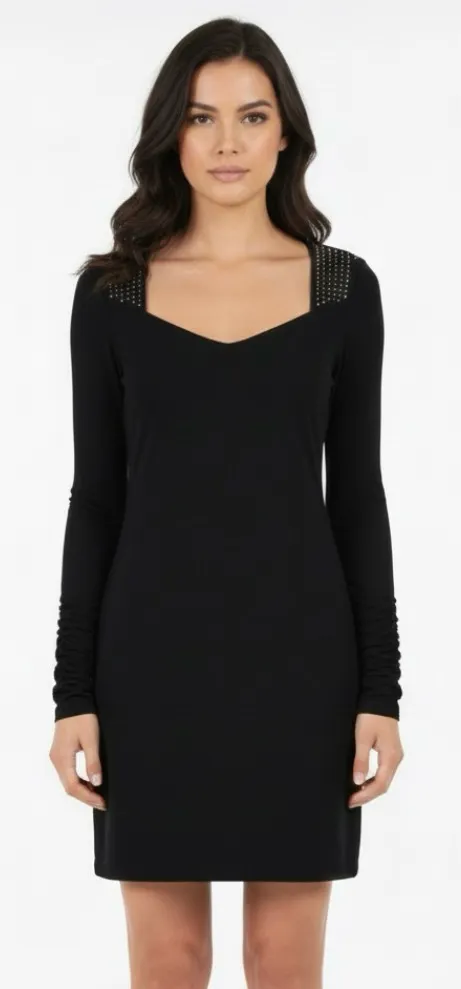 WHBM Black Studded Cutout Back Sheath Cocktail Party Dress ~ beautiful and very stretchy, this jer... Show more
