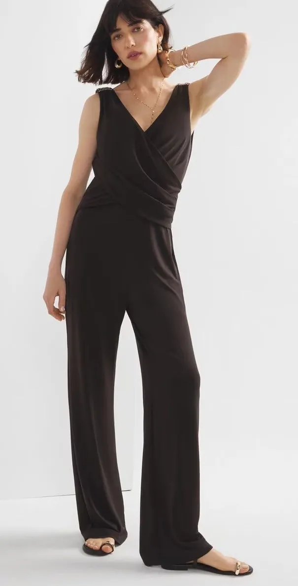 NWT WHBM Jumpsuit Shirred Shoulder Black Matte Jersey LP Women's Large Petite Measurements: • Overa... Show more