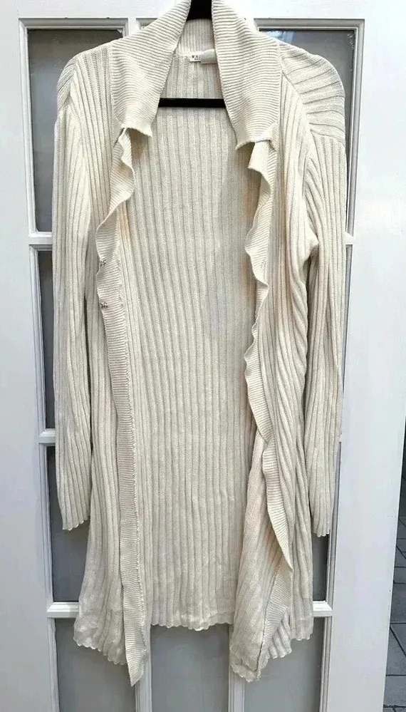 White House Black Market Vintage Y2K Cream Knit Duster Cardigan Sweater Size M Excellent vintage co... Show more