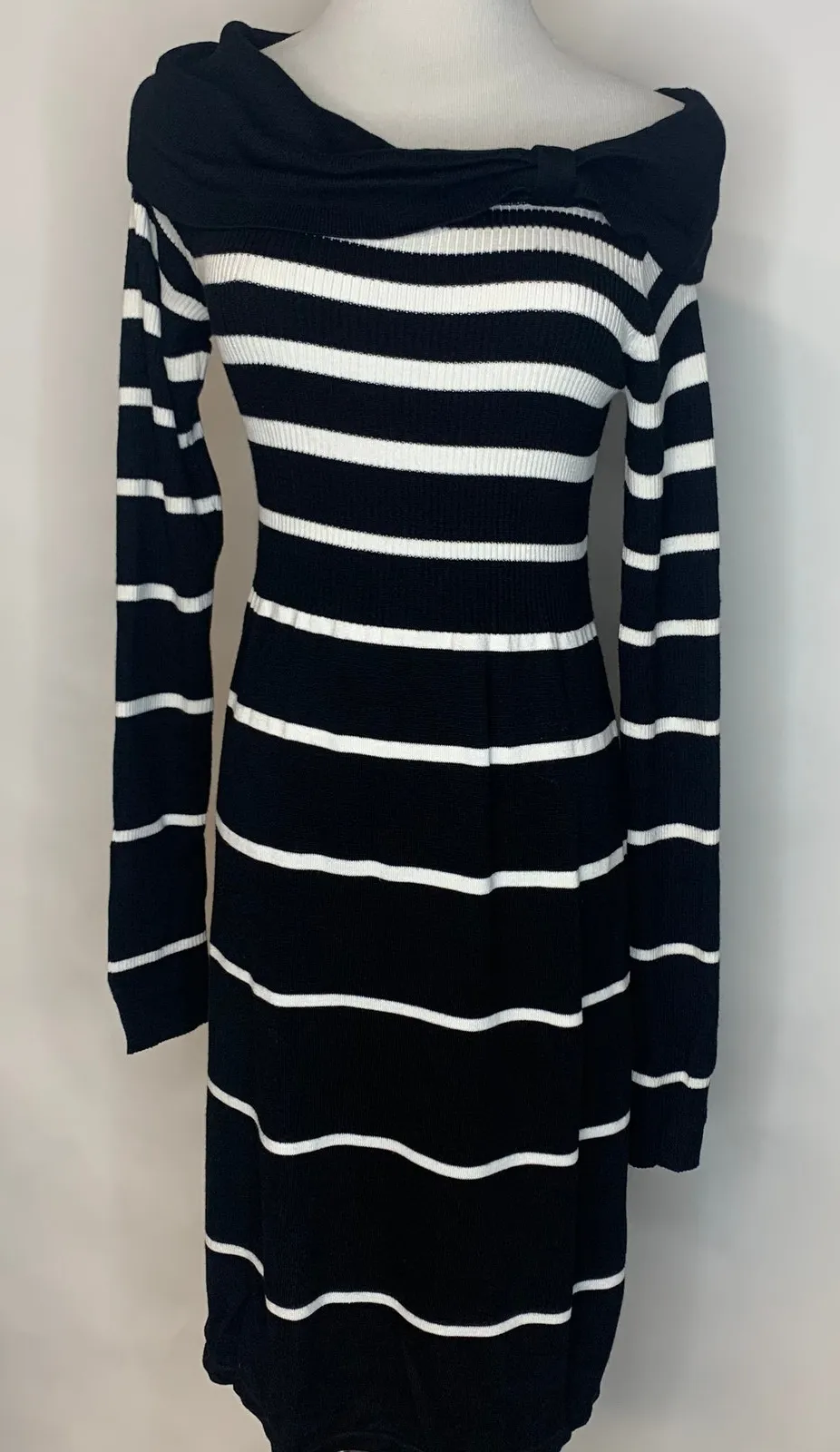 WHBM Black White Portrait Neck Sweater Dress Ribbed Sweater Black and white FItted bodice with a s... Show more