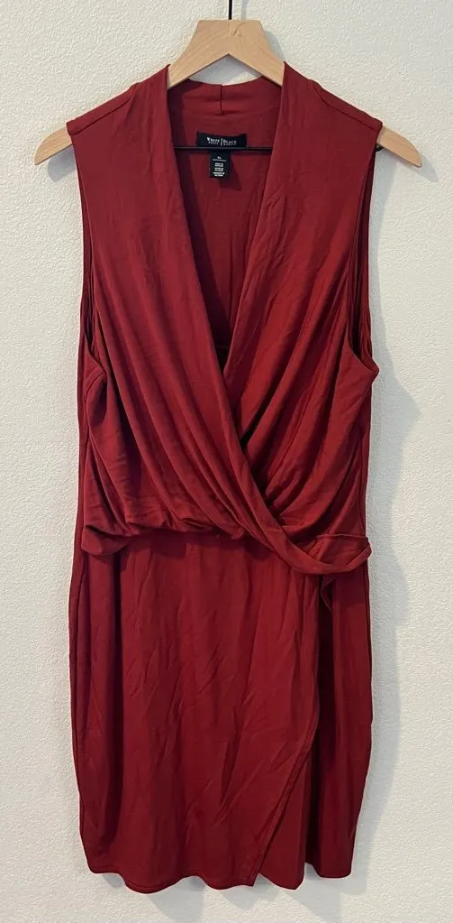 WHBM Burnt Orange Stretch Knit Drape Front Sleeveless Faux Wrap Dress Size XL Scoop neck with a... Show more