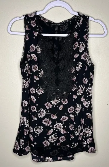 WHBM Dark Floral Whimsigoth Dandelion Scalloped Trim Lace Sheer Chiffon Size: XS Bust: 17 3/4” L... Show more