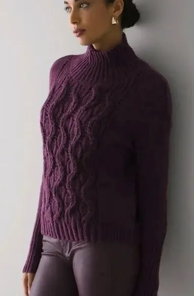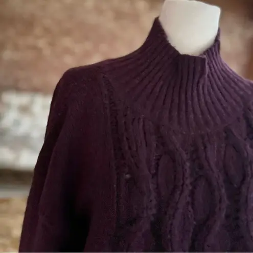 WHBM Purple Cable Knit Cowl neck Sweater ~ gorgeous shade of purple Plum ~ cable knit fabric is loo... Show more
