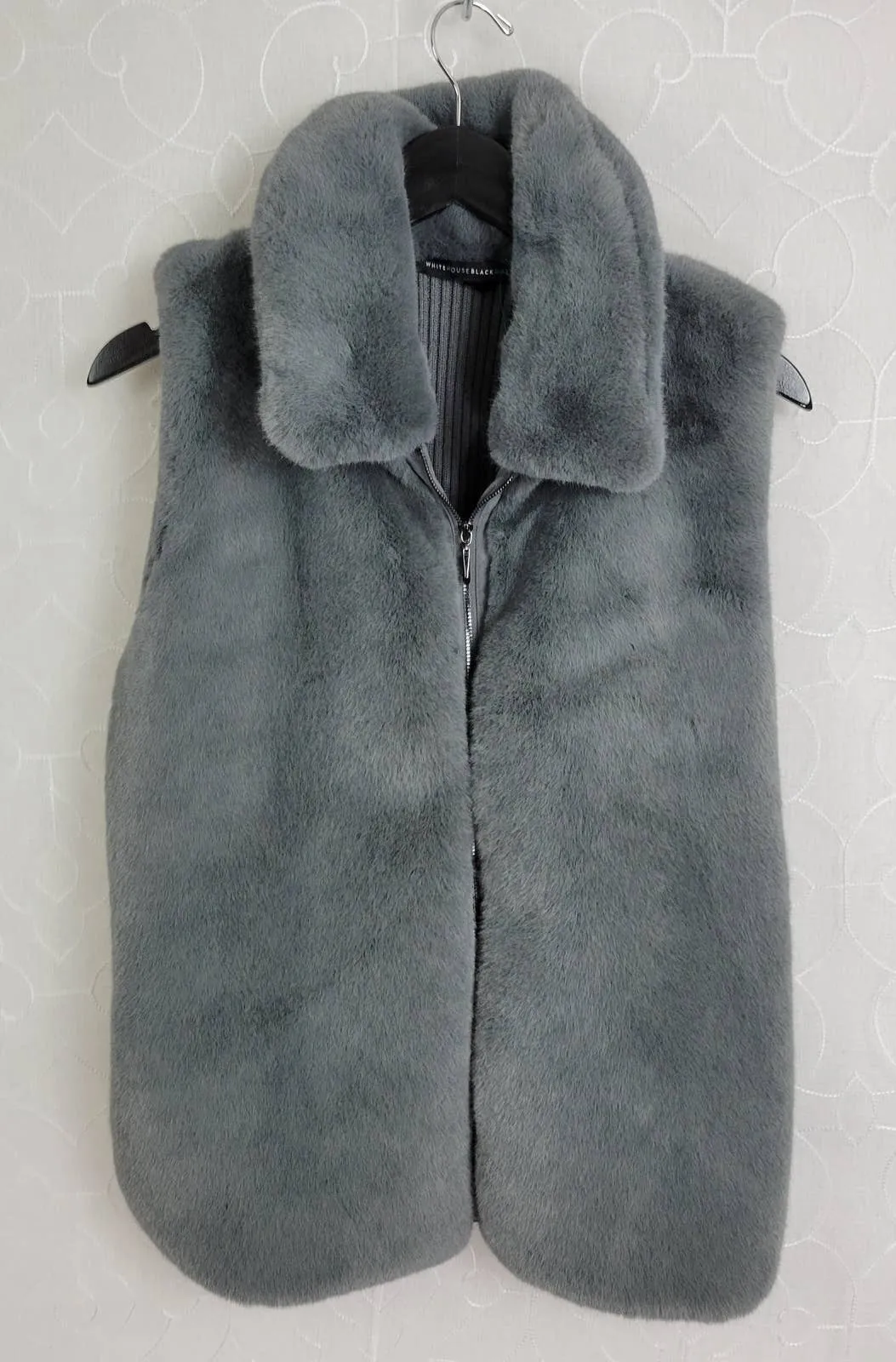 WHBM Womens Jacket Size Large Gray Faux Fur Collared Full Zip Long Vest FEATURES: Brand: White Hou... Show more