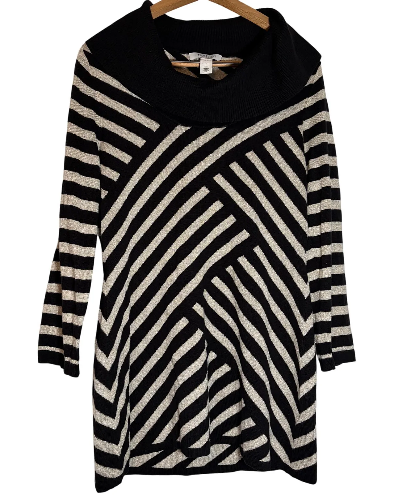 WHBM Women’s sweater tunic length black/cream/gold sparkle stripe. Size L. Geometric Crop sleeve P... Show more