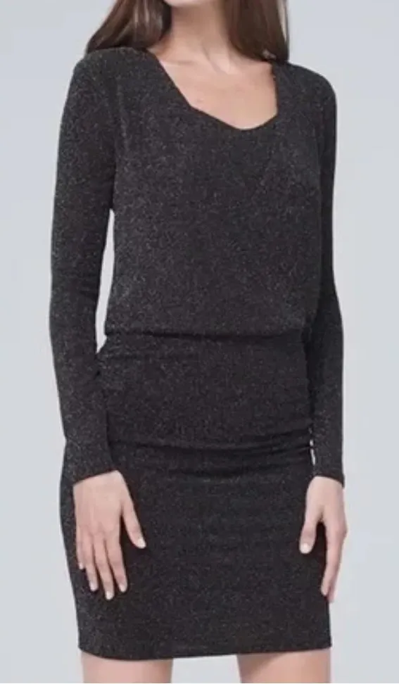 White House Black Market 2 pullover long sleeve black sparkle knit blouson dress - $50 New With Tags - From Melissa