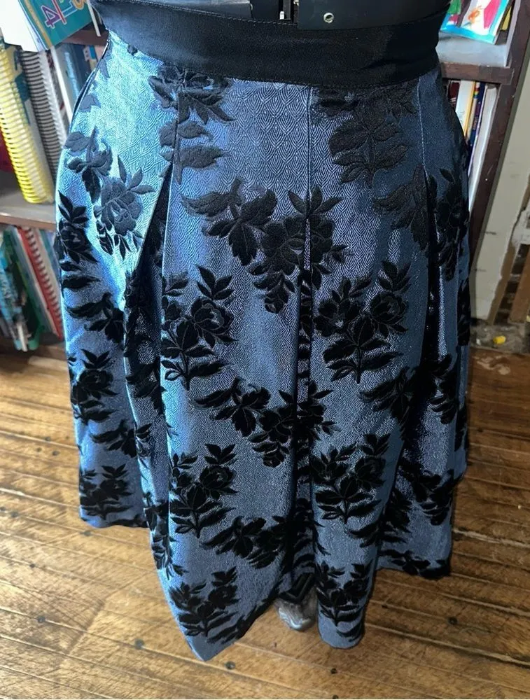 White House Black Market shimmery, black floral, Parisian, business casual, pleated, wide waistband... Show more