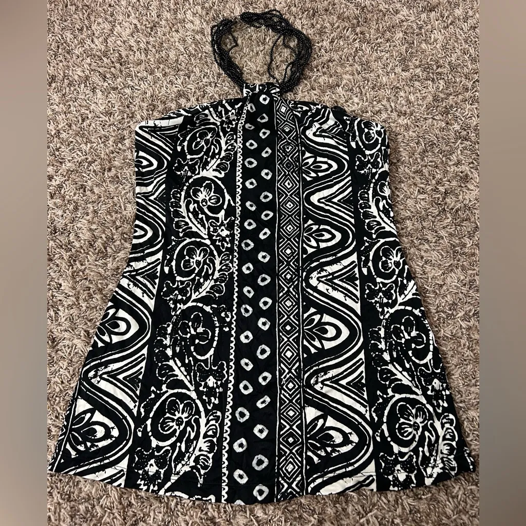 White House Black Market Y2K Style Beaded Necklace Halter Neck 100% Silk Tribal Print Top New with T... Show more