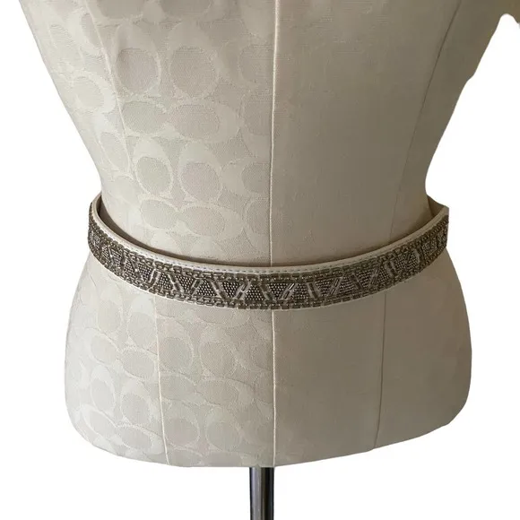 White House Black Market Beaded Studded Rhinestone snap button faux leather elastic belt size small.... Show more