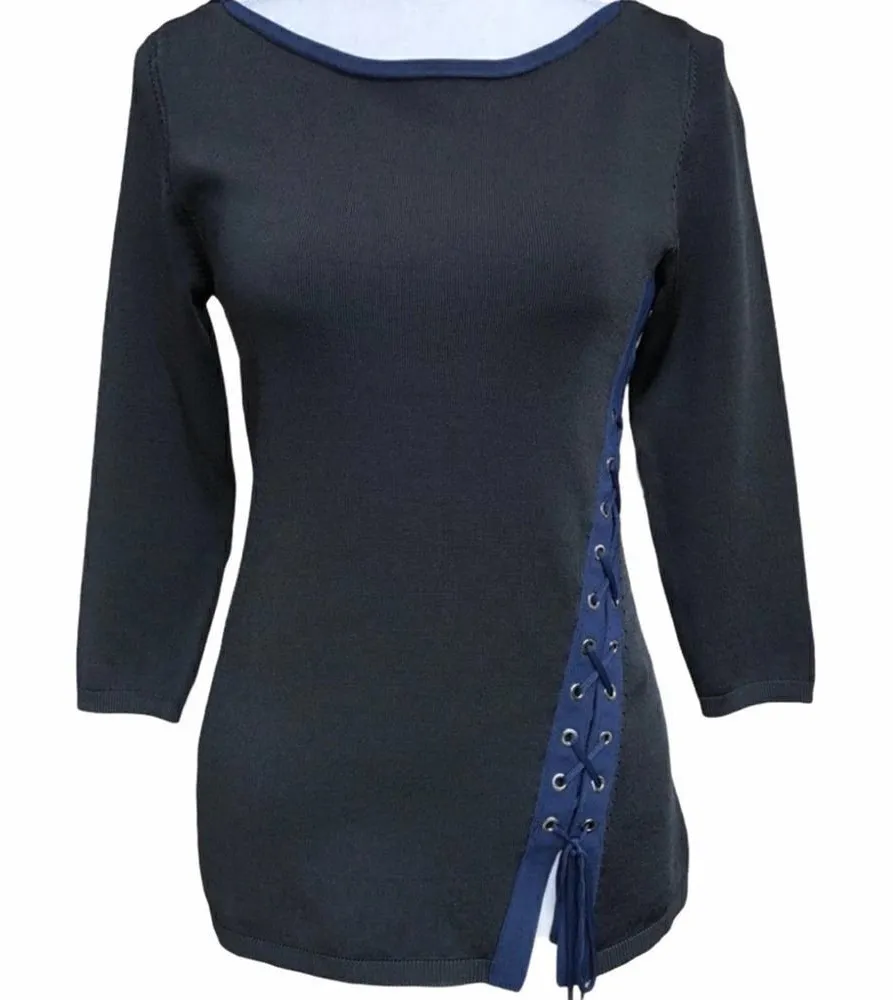 White House Black Market Black Blue Side Lace Up Top Size XS NWOT Classy and sophisticated Approxim... Show more
