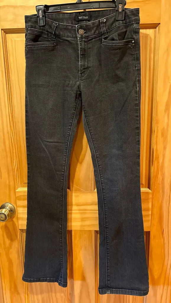 These WHBM Kinney flare jeans offer a fitted through the hips and thighs and begin to flare at the k... Show more