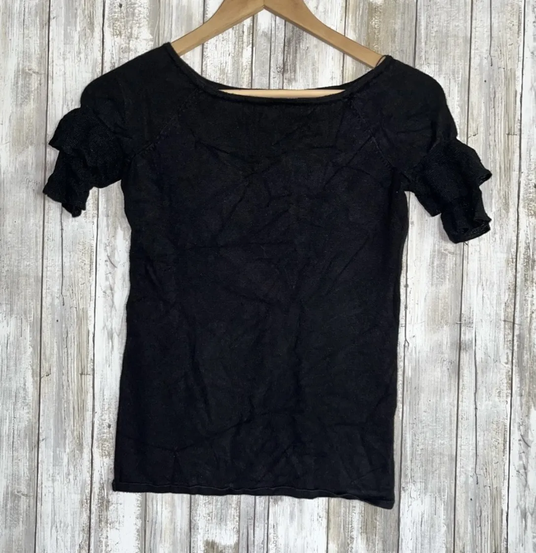 White House Black Market Black Tiered Sleeve Blouse •XXS •Pit: 15” •Length: 21” •72% Rayon 28% Nylon... Show more