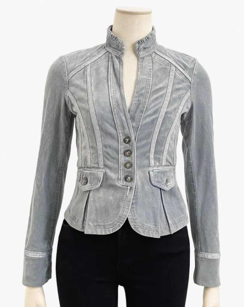 White House Black Market Blazer Womens 0 Gray Velvet Neutral Majorette Career Women's Size 6 Long... Show more