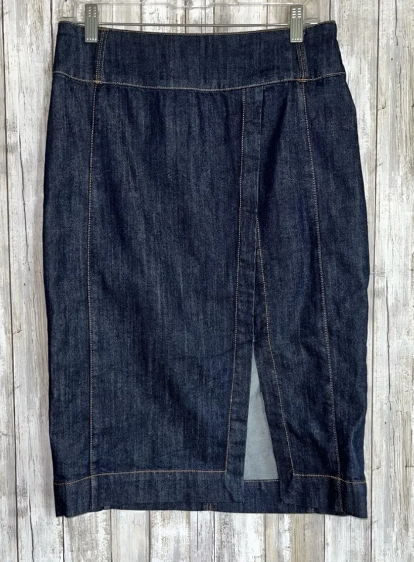 White House Black Market Dark Wash Denim Pencil Skirt •8 •Waist: 16” •Length: 26” •86% Cotton 14% Po... Show more