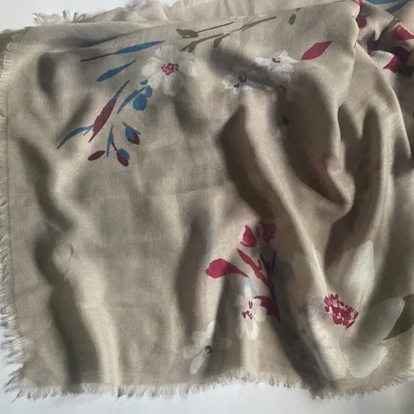 Measurements 38 X 40” Like new worn once Beautiful taupe with fuchsia baby blue and royal blue als... Show more