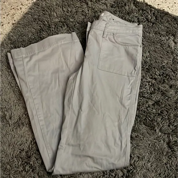 White House Black market jeans Flare pant Gray 97 percent Cotton Size 4 Has stitching along pocket... Show more