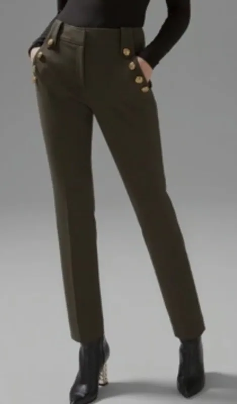 White House Black Market Jolie Button Straight Luxe Stretch Pants Olive Size 8 Excellent like new co... Show more