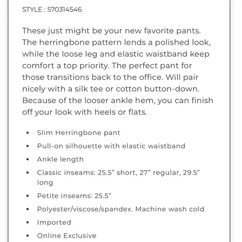 White House Black Market Knit Herringbone Pants. These just might be your new favorite pants! The he... Show more