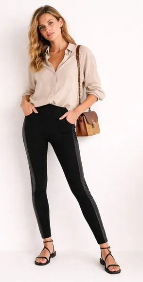 White House Black Market Leggings Faux Leather Side Detail Black- Great condition, see all pictures!... Show more