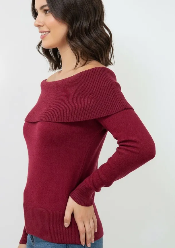 Chic off-shoulder design. Deep red color. Perfect for versatile styling. Measurements are in the ph... Show more