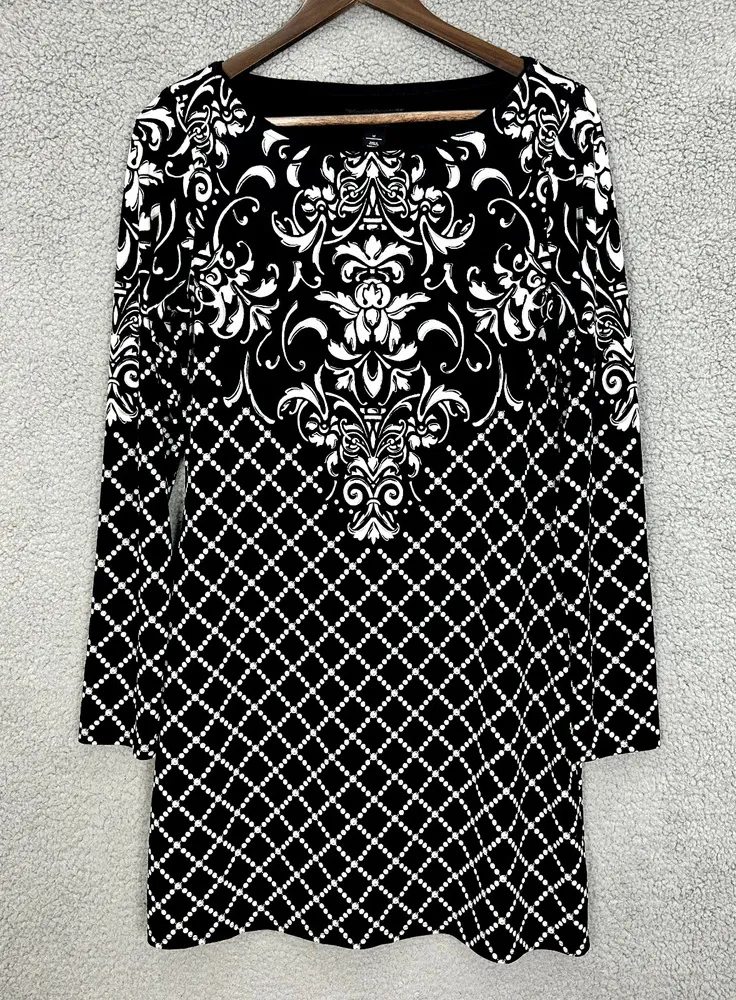 White House Black Market Shift Dress Womens Medium Geometric Diamond Boho Artsy used condition with... Show more
