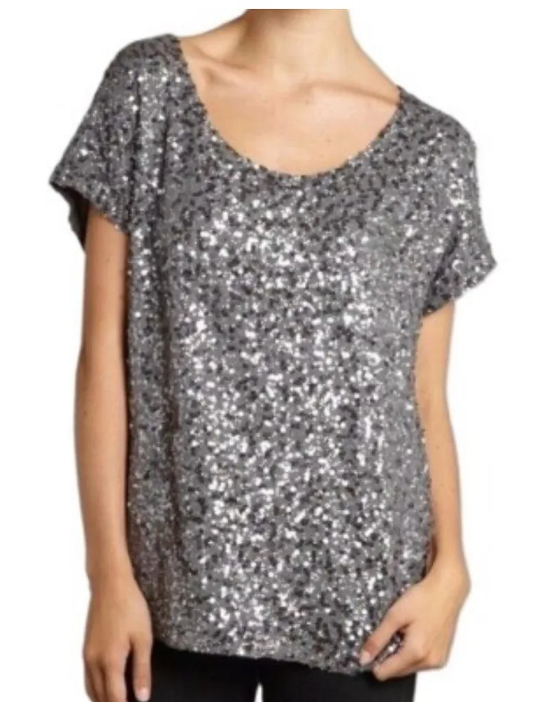White House Black Market Silver Sequin Short Sleeve Top Size L - $13 - From Milena