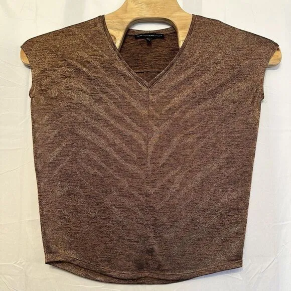 White House Black Market Size XXS Gold Bronze Metallic‎ V-Neck Tee Oversized - $18 - From HannahBThrifts