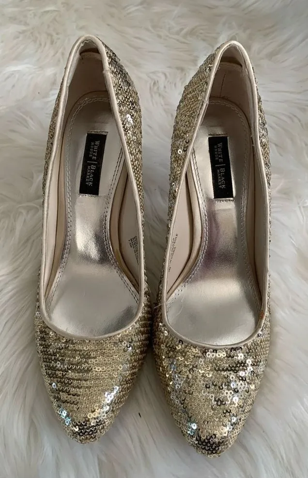 White House black market sparkly heels size 7.5 gold Silver - $63 - From Renata