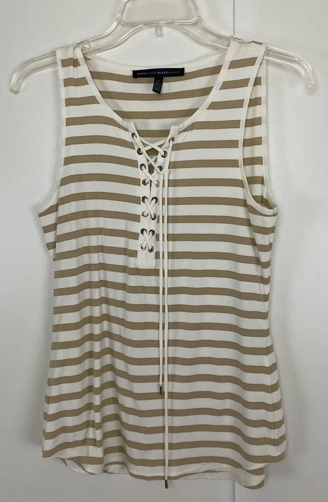 WHBM Tank Size Small Fabric tag removed Cream beige and gold striped Lace front Excellent pre-owned