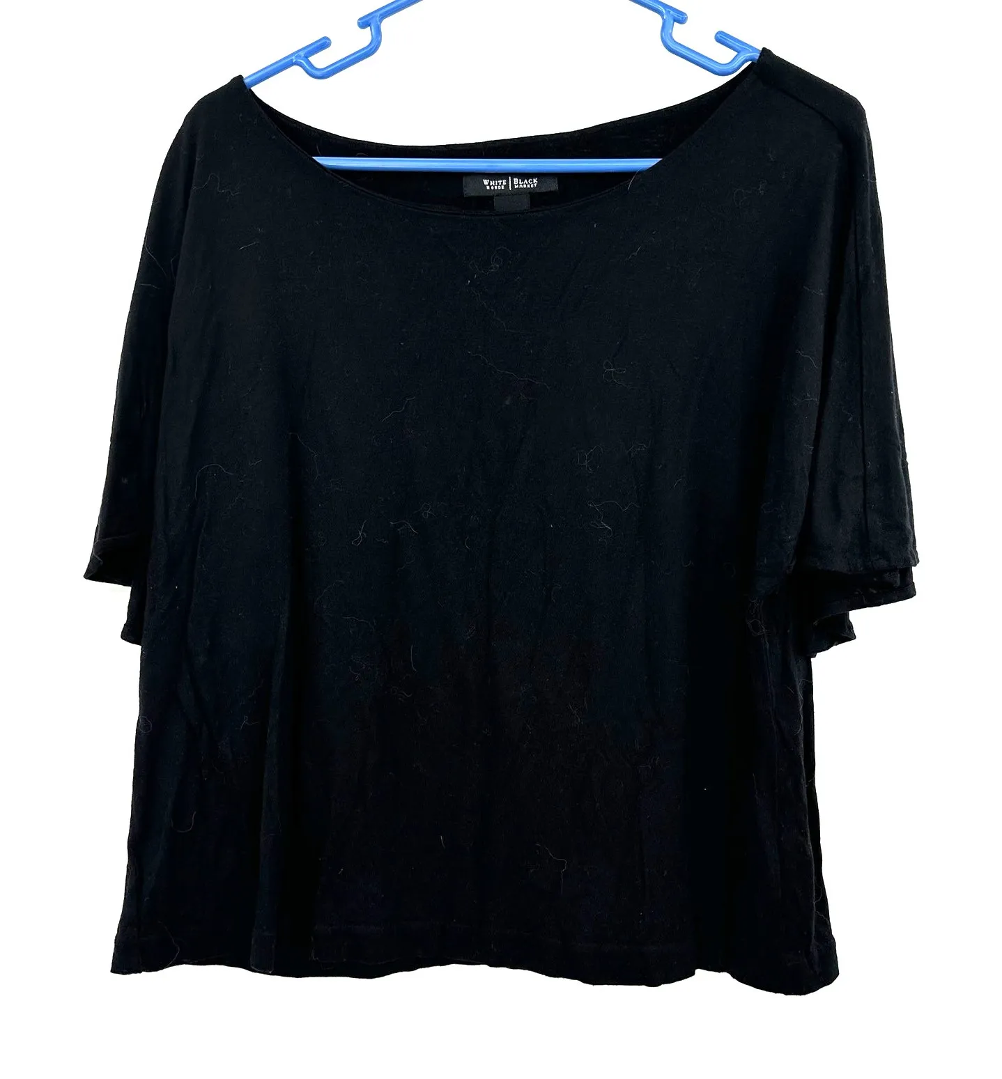 White House Black Market Size Medium Blouse Black Lightweight Short Sleeve Cape Style Back