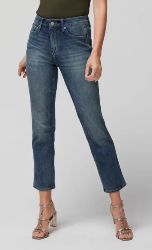 Excellent pre-loved, like new condition medium/dark wash jeans from WHBM in “The Straight Crop” styl... Show more