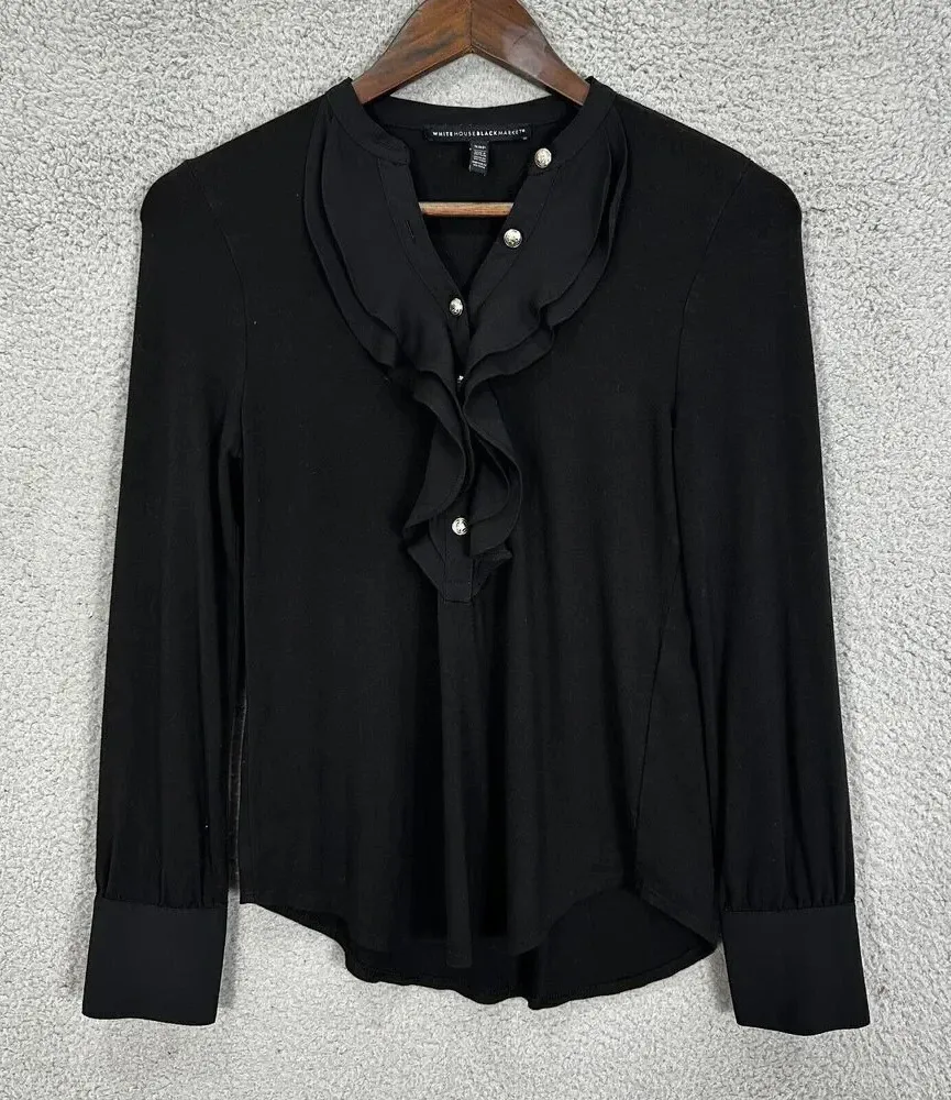 white house black market top womens XSP black button accent ruffle long sleeve used condition with... Show more