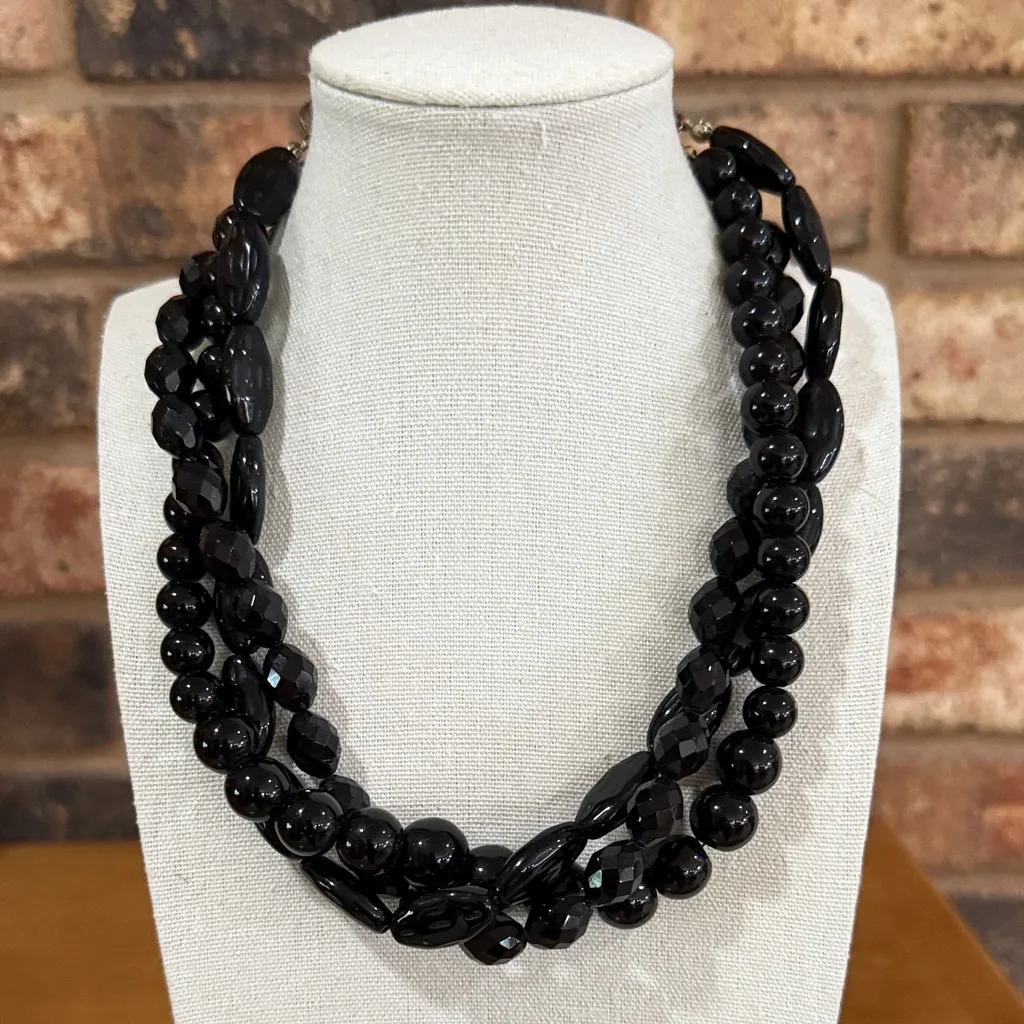 . Beautiful black glass beads. Only wear on lobster claw and hang tag. Length is adjustable 15-17”