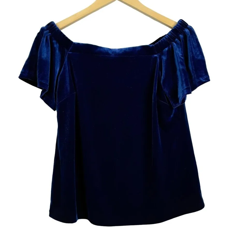 White House Black Market Velvet Off Shoulder Blue Depths Top NWT Measurements Laying Flat!! Size - X... Show more