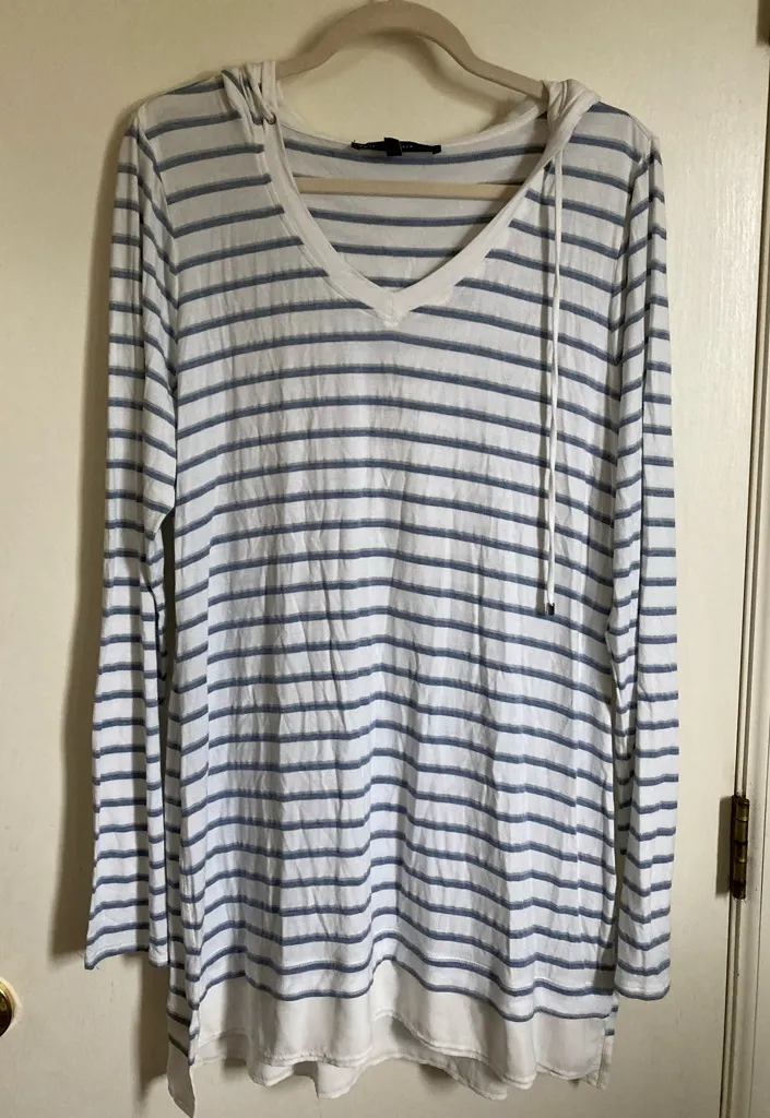 White House Black Market White Striped Hooded Long Sleeved Mini Dress Like New Condition White, Blu... Show more