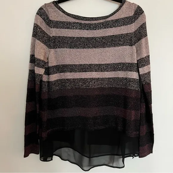 WHITE HOUSE BLACK MARKET Women Knit Top Sz S Metallic Purple Multi Stripe - $14 - From Brittany