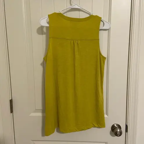 Women’s White House Black Market blouse. Top is sleeveless & made of a shade of lime green & gold ha... Show more