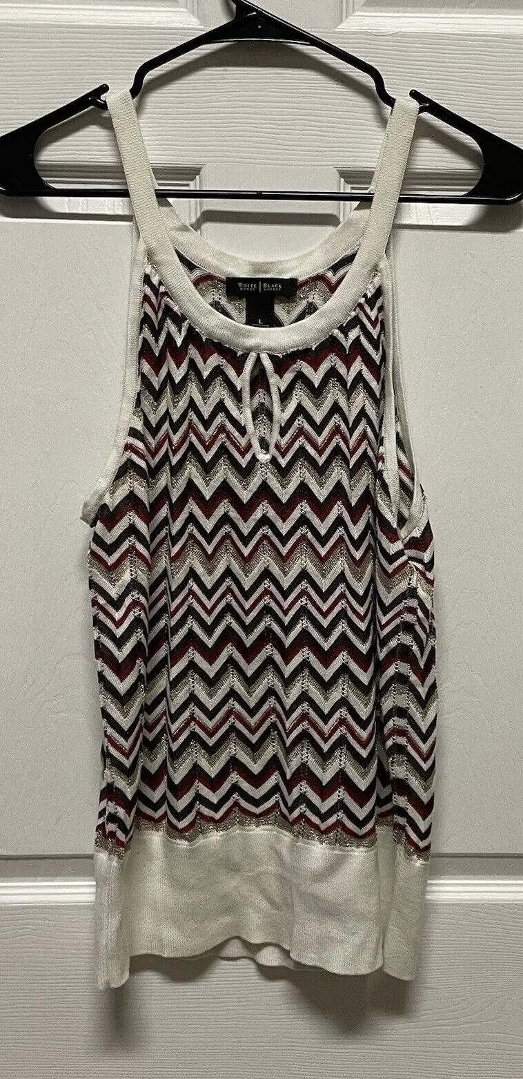 This White House Black Market Women's Sleeveless Sweater Tank Top in size L features a Chevron patte... Show more