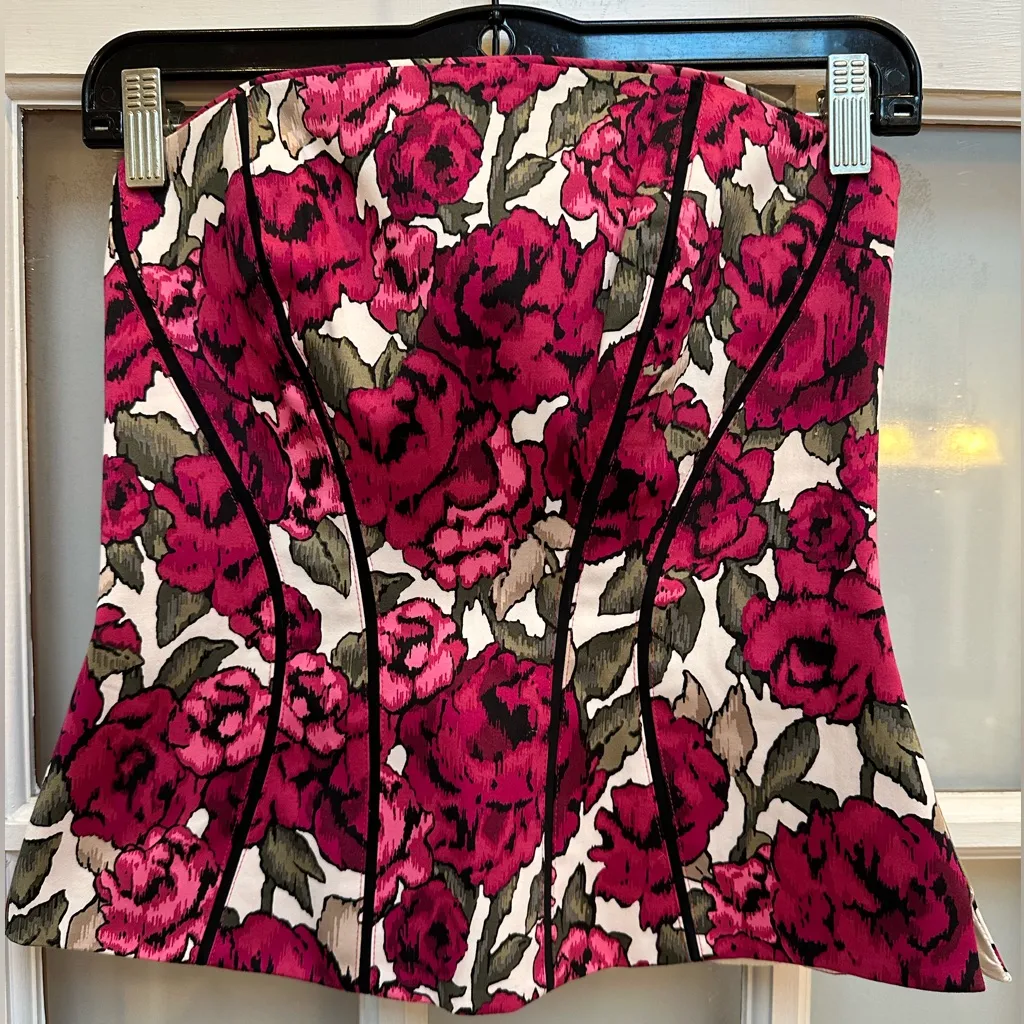 Add a touch of elegance to your wardrobe with this beautiful floral bustier top. Featuring rich pink... Show more