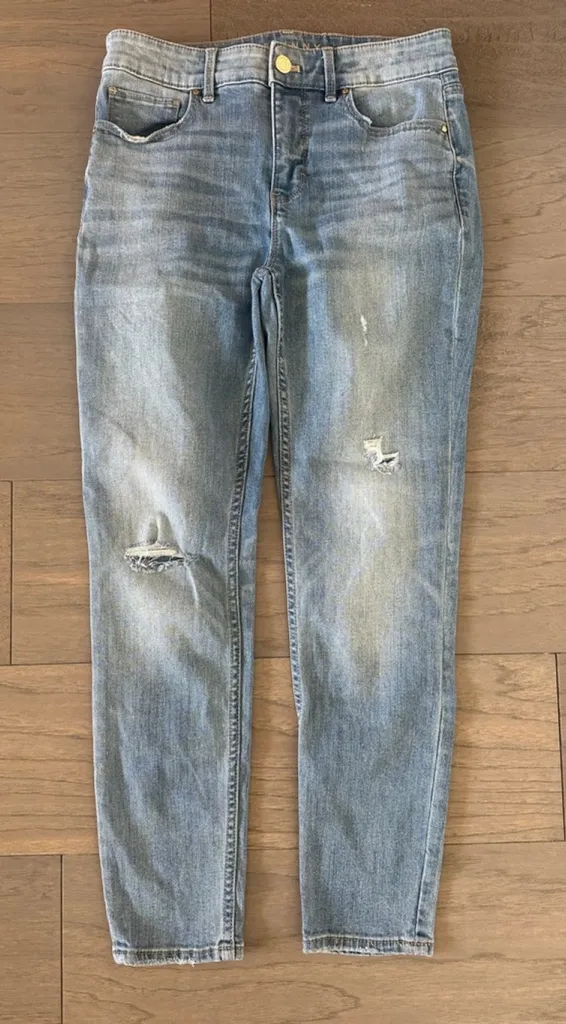 Elevate your casual style with the Women's White House Black Market Light Wash Distressed Skinny Jea... Show more