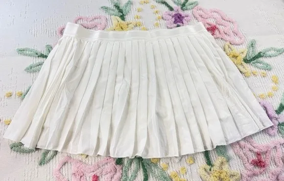 Elevate your active lifestyle with this crisp white pleated skirt featuring integrated shorts for ultimate comfort and mobility. The stylish pleats offer a flirty and athletic aesthetic, perfect for on-the-go activities or casual outings. This versatile piece ensures you look and feel your best whether you're hitting the tennis court, enjoying a park stroll, or simply running errands. Measurements: • Waist: 18 • Length: 16 in Department: Women Type: Skort Style: Athletic Performance/Activity: Gym & Training, Tennis, Golf, Running & Jogging Skirt Length: Short Fit: Athletic Pattern: Solid Features: Elastic Waist, Moisture Wicking, Breathable Occasion: Activewear, Casual Closure: Pull On Material: Polyester, Spandex Fabric Type: Microfiber Keywords: tennis skirt, athleisure skirt, pleated skirt, white skirt, built in shorts, athletic skirt, sporty skirt, activewear, golf skirt, running skirt, skort, summer skirt, casual skirt, tennis outfit